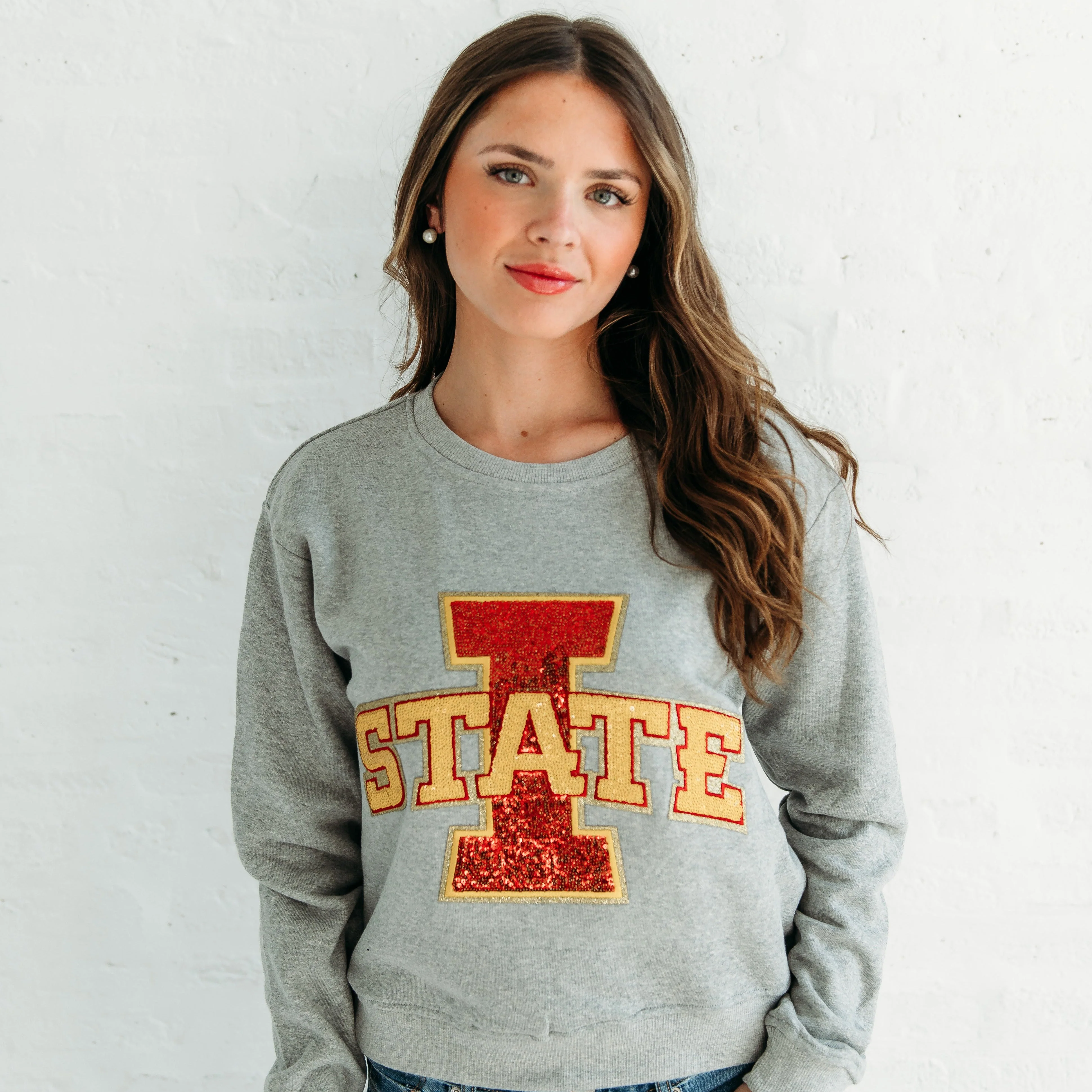 Stay cozy while sparkling with pride in our Iowa State Logo Sequin Women’s Crewneck! this elevated classic features the Iowa State logo in bold, shimmering sequins, blending comfort with standout style. This crewneck is soft, versatile, and effortlessly chic. Whether you're cheering from the stands or repping your Cyclone pride around town, this piece proves that spirit wear can be both comfy and glam. Life's too short not to shine!